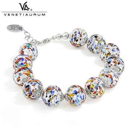 Genuine Murano Glass Bracelet cm19 with Multicolore Glass Beads and Sterling Silver closure.