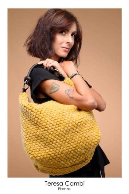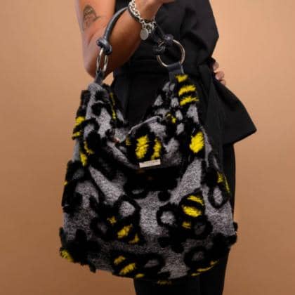 Saco de lana con diseño de abeja en piel y bandolera