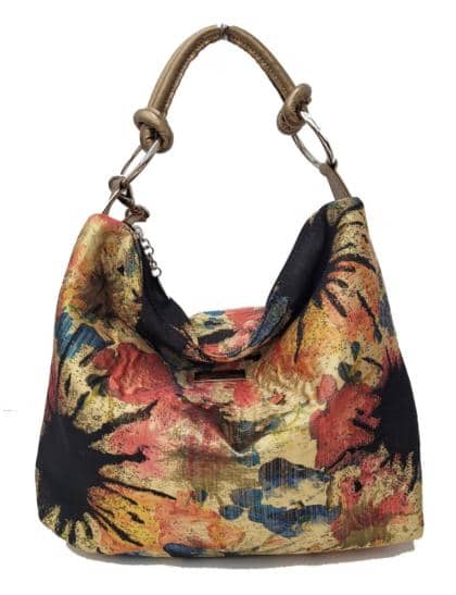 Bolso de tejido suave estampado, asa y bandolera de ecopiel. Cierre de cremallera, bolso grande y ligero. Forro interior negro con doble bolsillo, un bolsillo con cremallera.