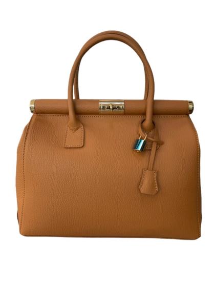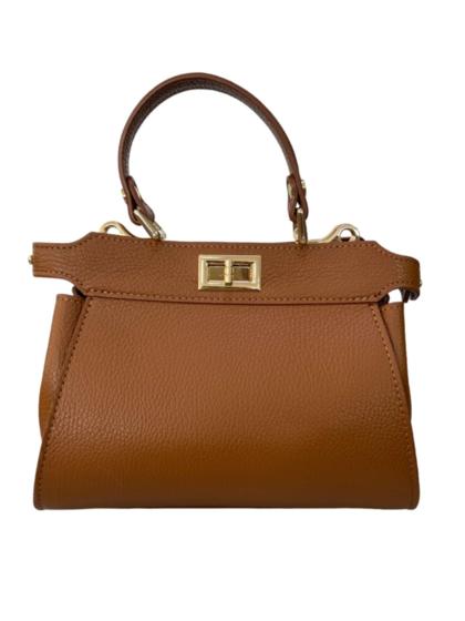 Bolso de mano de piel auténtica. Hecho en Italia. Bolsillo interior con cremallera. Bolsillo interno con cremallera. Bandolera ajustable y extraíble en piel auténtica. Accesorios de metal color bronce.