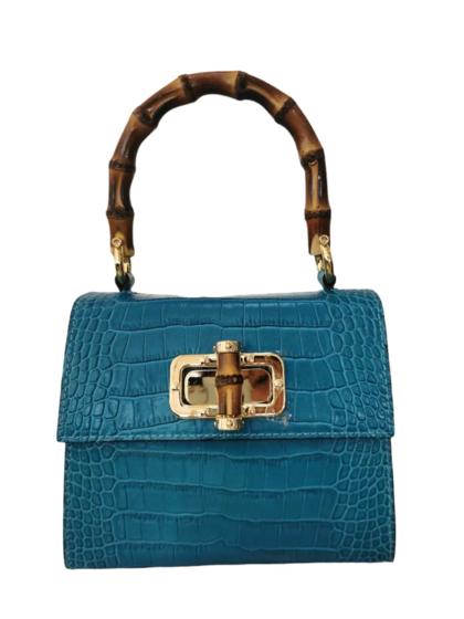 bolso de bambú en piel de cocodrilo genuina