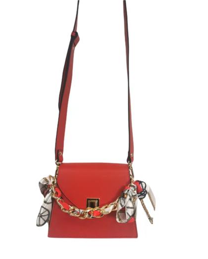 Bolso bandolera en piel genuina, Made in Italy. Cierre con accesorio de solapa. Correa en cadena de oro.