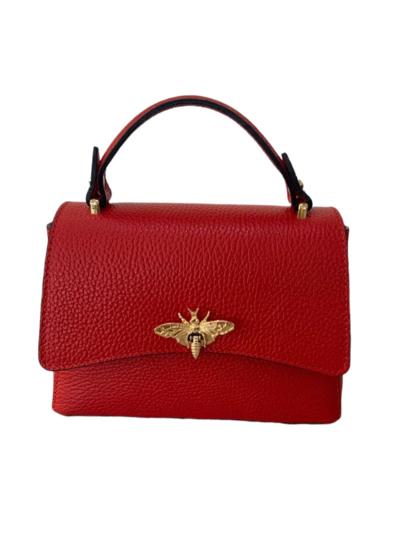 Bolso pequeño con asa de abeja. En auténtica piel de dólar. Fabricado en Italia. Forro interior. Bolsillo con cremallera. Bandolera ajustable. Accesorios dorados.