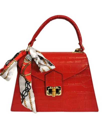 One chain top handle, detachable/adjustable shoulder strap 120 cm, flap closure, magnet snap lock, interior pocket.