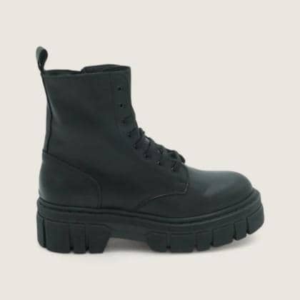 Brushed Calfskin Lace-Up Boot This handcrafted brushed calfskin lace-up boot comes in a classic black color. Featuring a rounded toe and rubber sole, it offers comfort and style with a 5.5 cm heel and 4 cm platform. The fit is regular, ensuring a perfect fit. Handcrafted in Italy, it is ideal for those seeking a sturdy yet elegant look.