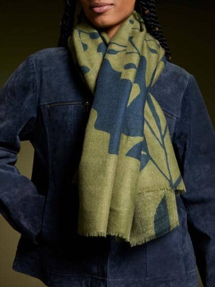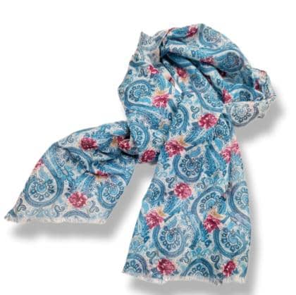BEAUTIFUL SCARF IN LUXURY SILK AND LINEN FABRIC WITH FLORAL AND PASLEY PATTERN.